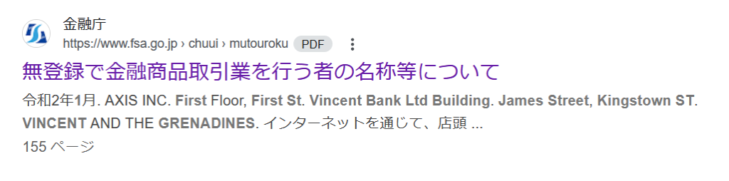 で、ググってみるとこの風に金融庁に「無登録業者」としてとりあげられています。